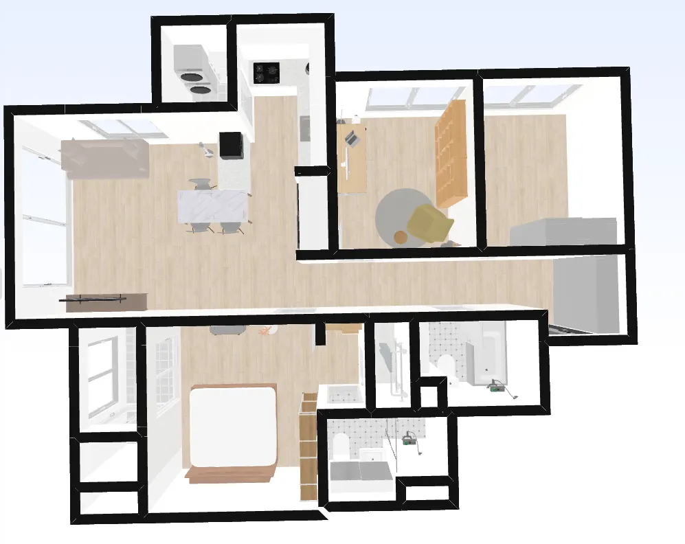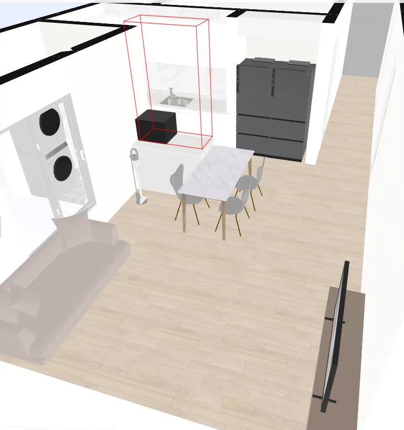 인테리어 어플을 사용했으나, 현재 살고 있는 집의 도면이 등록되어 있지 않아서 원하는 형태의 도면을 임의로 선택하였습니다.