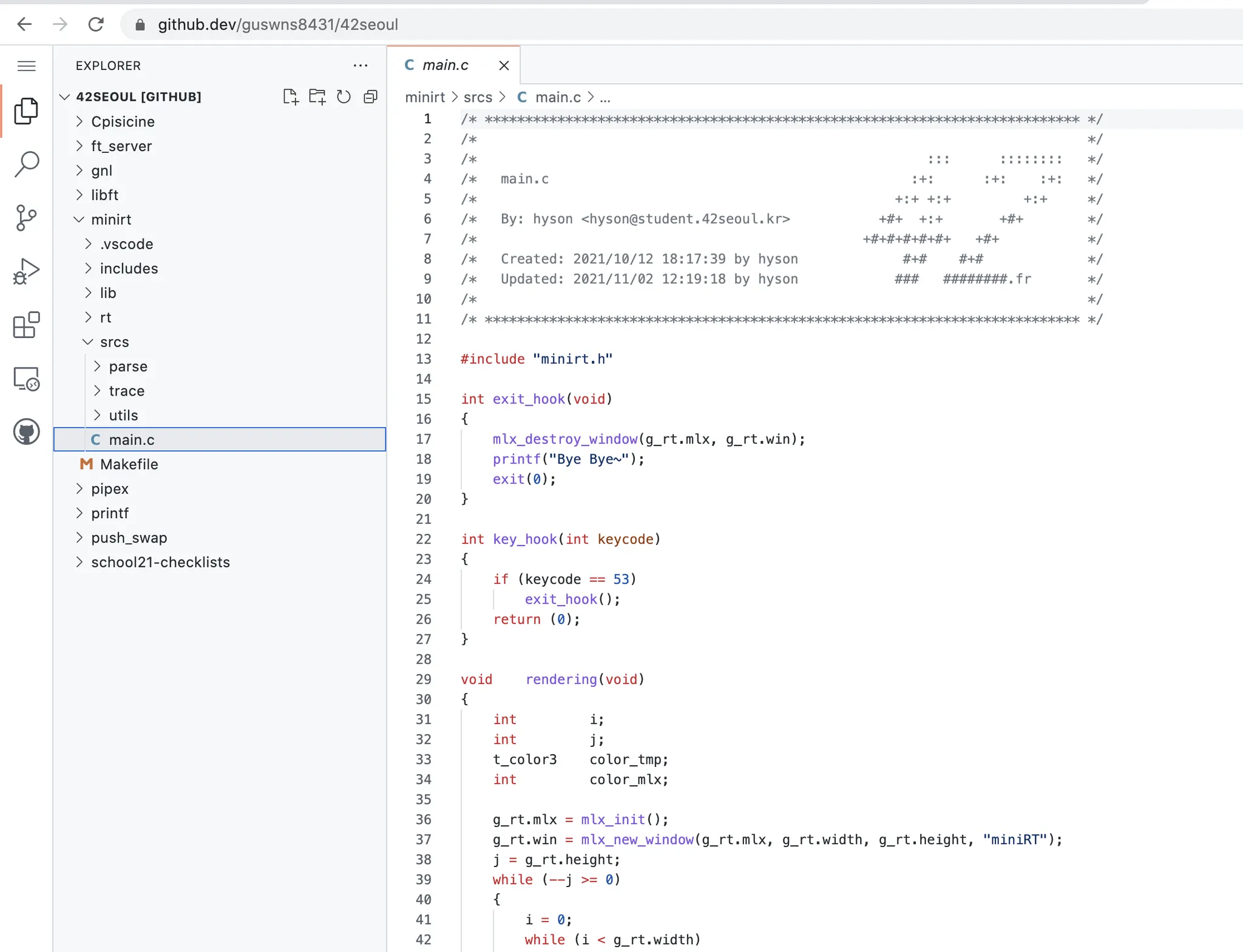 codespaces를 공개하면서 웹에 기반을 둔 에디터도 함께 공개가 되었는데, 어떤 리포지토리든 github.com에서 com을 지우고 dev로 바꾸게 되면 vscode 에디터로 바뀌면서 코드를 확인할 수 있게 된다.
