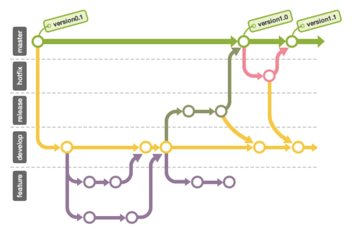 이때, git branch 를 활용하여 작업을 분할하고 합치는데 권장되는 workflow 가 있다. 바로 다음과 같다