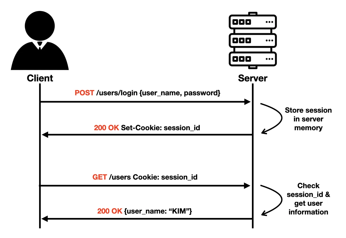 사용자의 세션 ID와 그 사용자에 대한 식별 정보를 key:value 형태로 서버가 기억합니다.