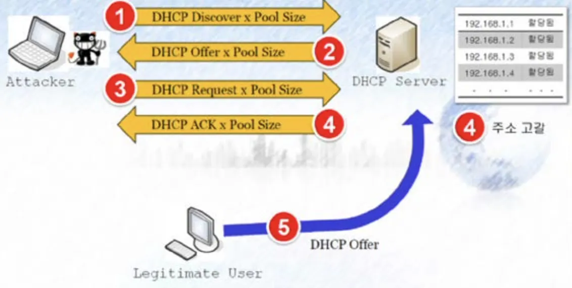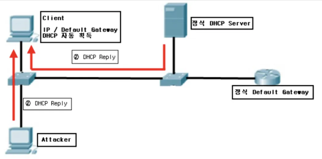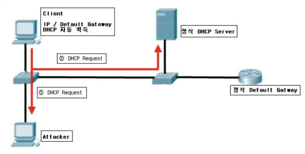 2가지의 주요 보안 문제가 있다. (DHCP는 Unauthenticated Protocol이다.)