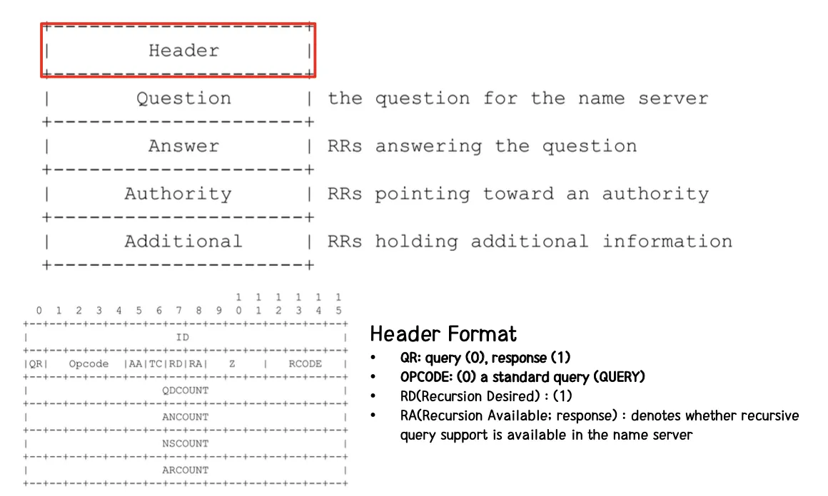 DNS 메세지 형식은 다음과 같다. (RFC1035에서 찾아볼 수 있다.)