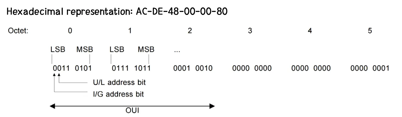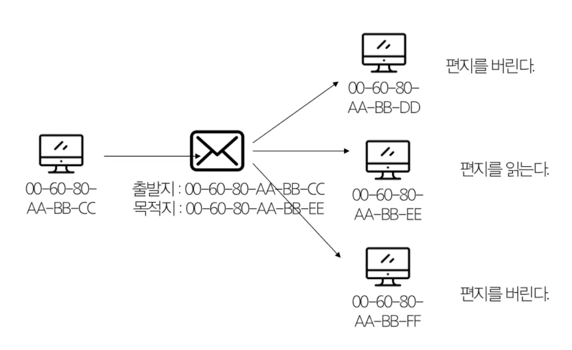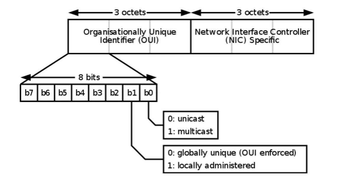 Media Access Control의 약자로 각 기기의 네트워크 카드(하드웨어)에 부여된 고유한 물리적 주소이다! 즉, 모든 네트워크 장비는 자신만의 고유한 MAC 주소를 가지고 있다. 48비트로 구성되어 있으며 16진수로 표시된다
