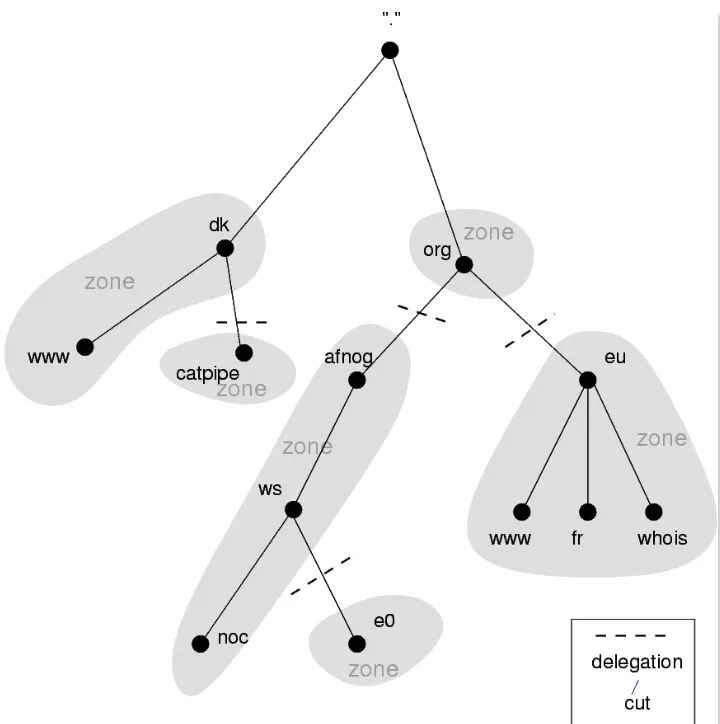 DNS가 설계 되었을 때는 계층적인 구조를 목표로 설계 되었으며, DNS 관리는 중앙 집중된 객체가 모든 DNS 데이터를 관리하는 방식이 아닌 각 객체마다 관리를 공유하는 방식으로 설계되었다. 이런 관리의 분산을 Delegation이라고 한다.