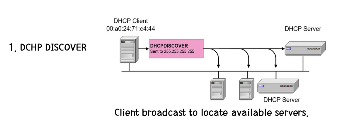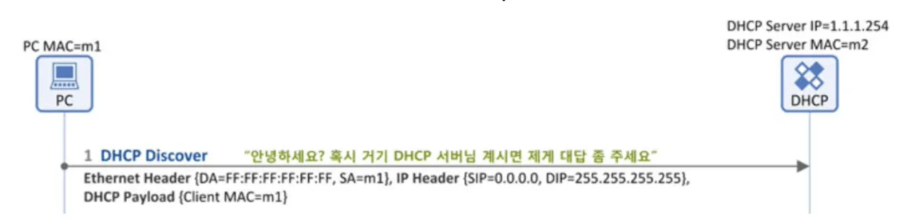 [1] Client는 DHCPDISCOER 메세지를 Broadcast로 보낸다.