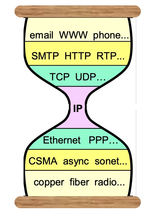 특정 Protocol로 사용자와 통신을 하는 과정에서 메세지의 Delivery가 발생했다고 하면, Delivery외의 잡다한 일을 한 장치에서 모두 수행하지 않는다. 이 때 Protocol이 수행하는 특정 행위 외의 모든 것들을 하위 계층의 Protocol에게 맡긴다.