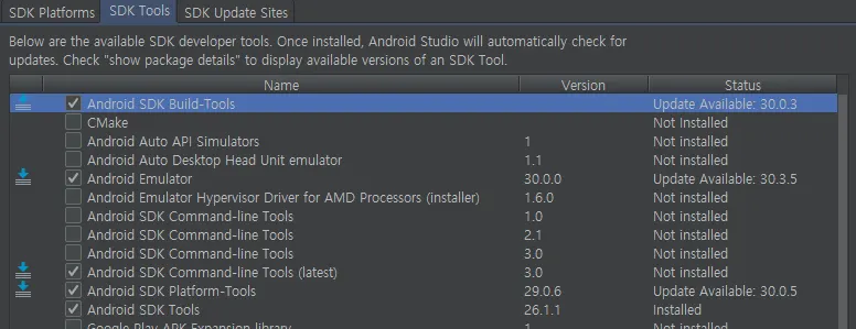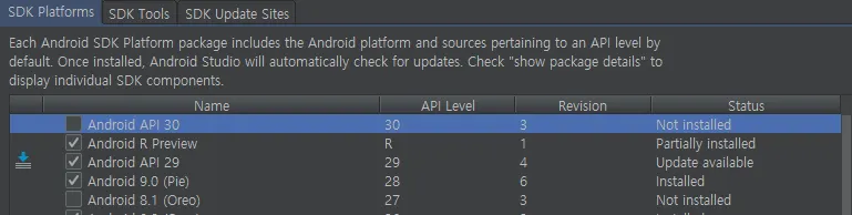 Android SDK 중에서 API 29 선택 (가장 최근 버전)