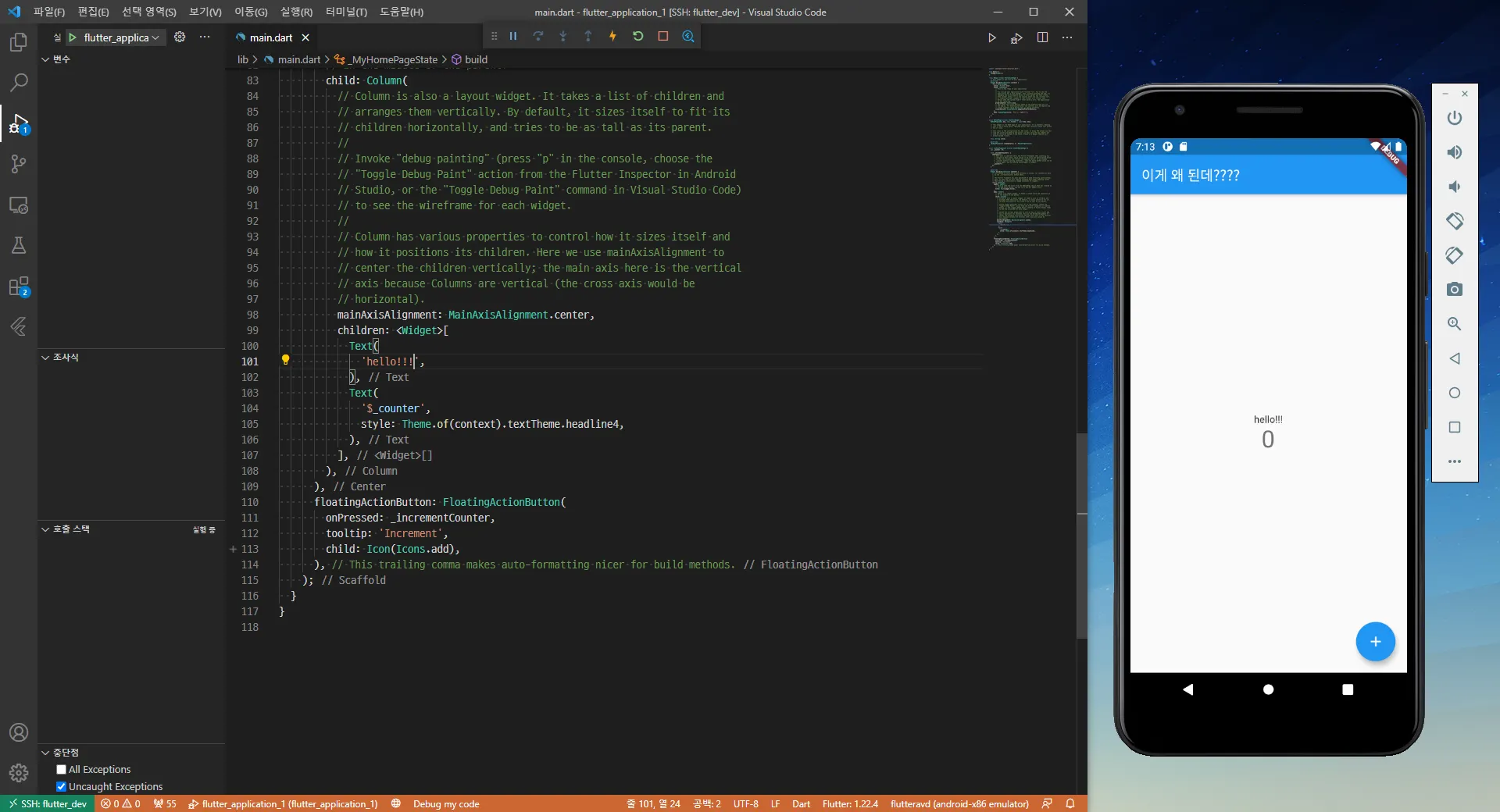 VSocde에서 ssh 로 접속후 Flutter 확장 설치