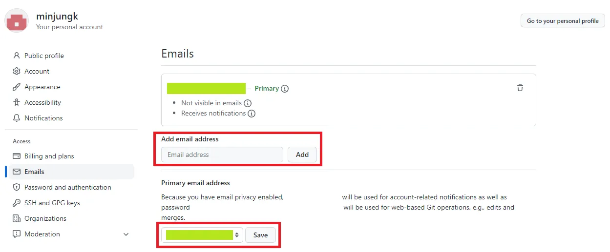 GitHub 계정의 이메일을 삭제하는 경우 잔디가 사라지는 현상 발생!!