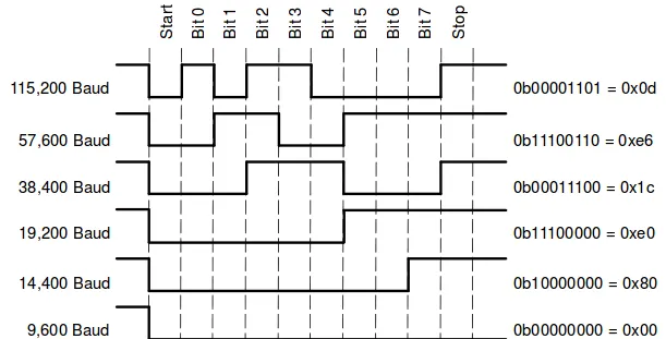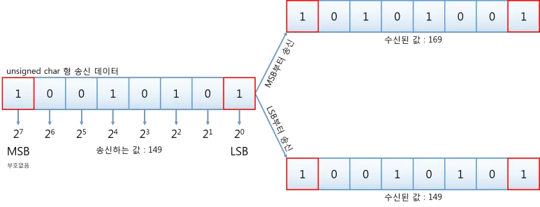 임베디드 시스템 등에서 직렬 통신을 할 때 송수신 데이터의 각 비트를 단위시간에 따라서 0 또는 1을 순차적으로 보낸다.