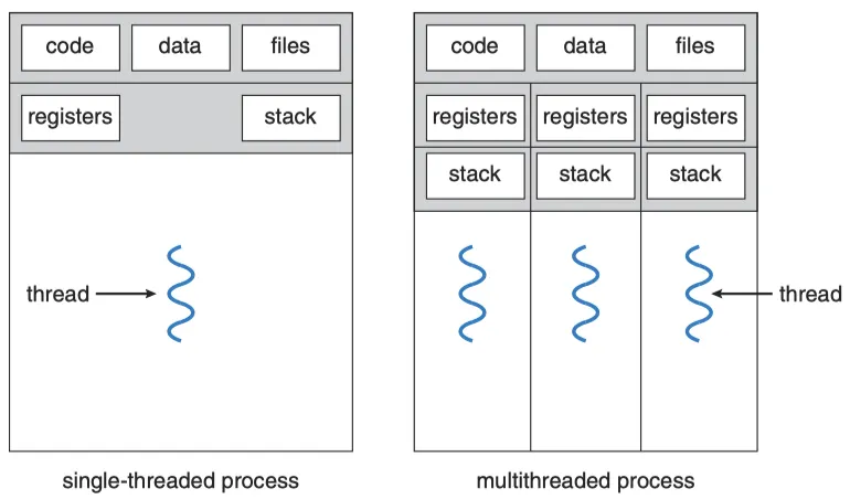 스레드(Thread) : 프로세스 내에서 실행되고 있는 여러 흐름 단위(stack을 제외한 영역 공유)