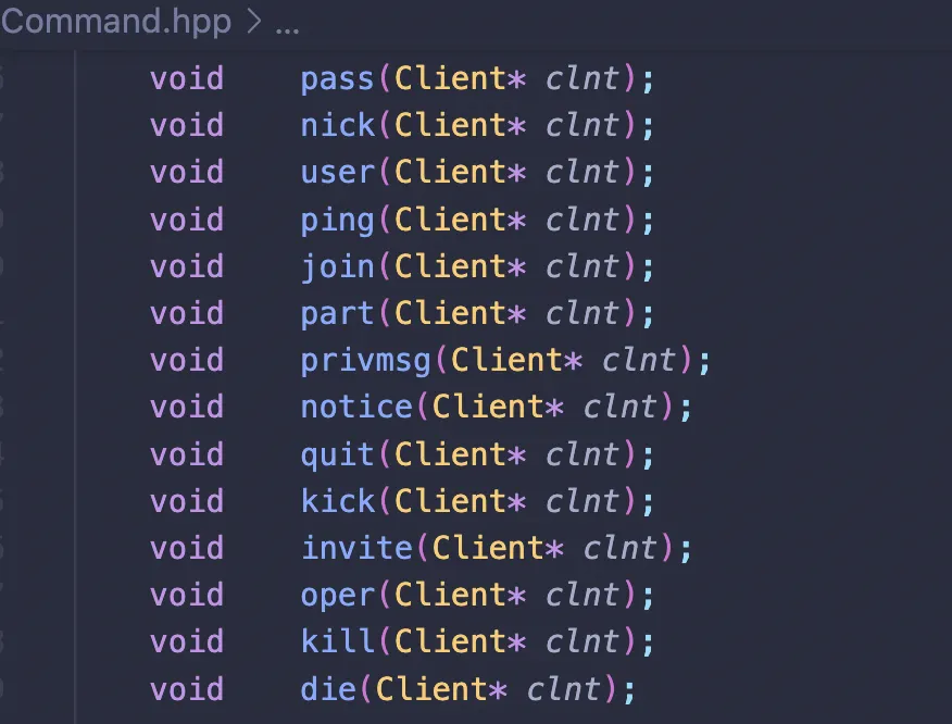 Command 객체는 irc 프로토콜 메시지의 명령어 로직을 처리하는 역할을 담당한다.