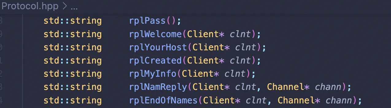 Protocol 객체는 클라이언트에게 보낼 irc 프로토콜 메시지를 만드는 역할을 담당한다.