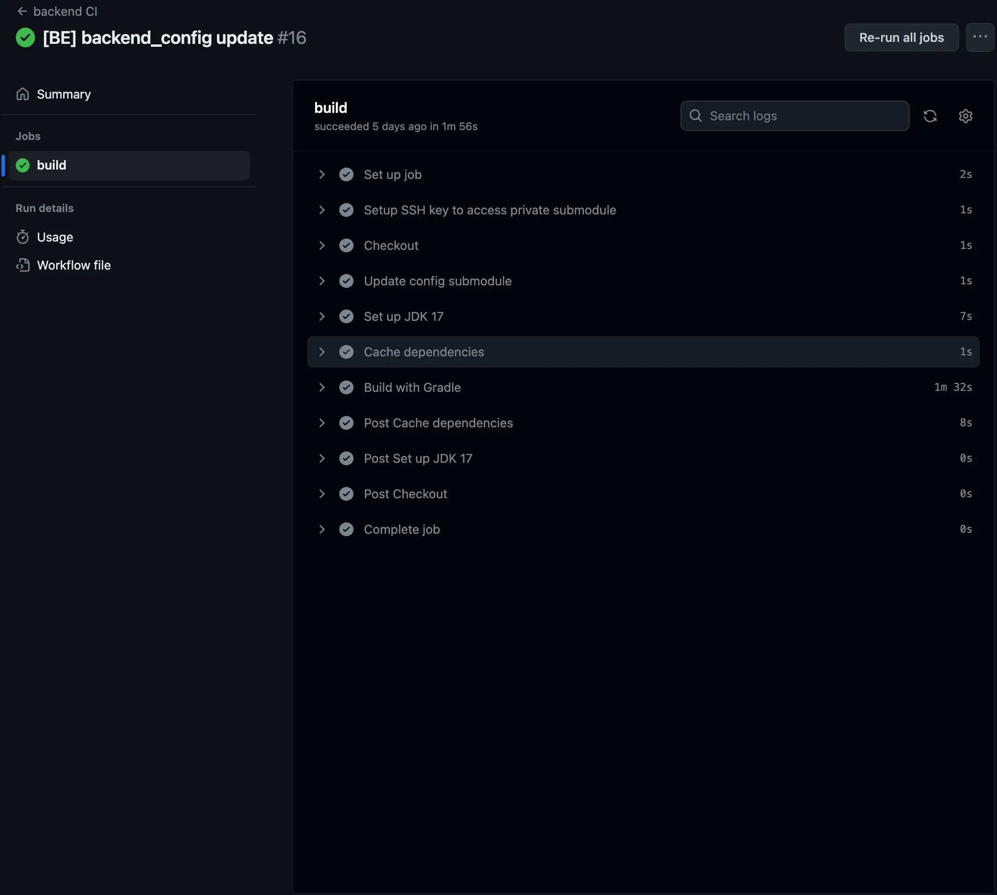 (Spring) 환경변수에 해당하는 .yml 파일들이 있는 서브모듈(backend_config/)을 업데이트하고 해당 환경변수를 적용해 build한다.