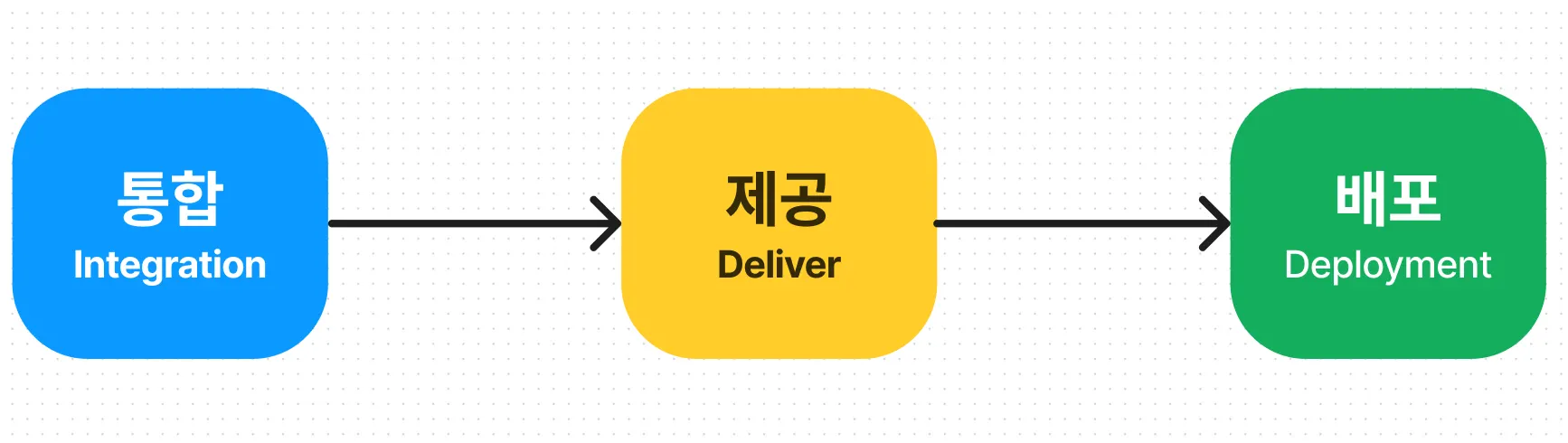 CI/CD는 지속적 통합 및 지속적 제공의 구축 사례만을 지칭할 때도 있고, 지속적 통합, 지속적 제공, 지속적 배포라는 3가지 구축 사례 모두를 의미하기도 한다.