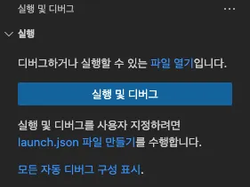 왼쪽 위 [실행 및 디버그]항목의 오른쪽에 있는 초록색 플레이 아이콘을 클릭하여 디버깅을 시작하자.