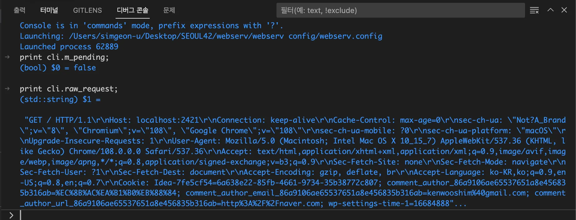 또한 디버거탭에서 제공하지 않는 정보도 [디버그 콘솔]을 통해 원하는 값을 print해서 확인하는 것도 가능하다.