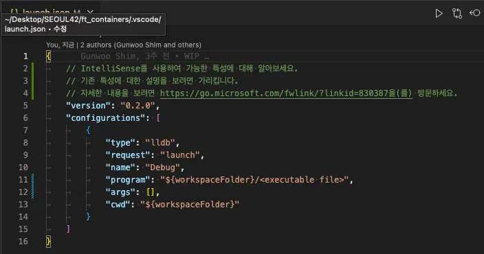 push_swap같이 실행인자를 넣어야 할 경우, “args”에 실행인자를 넣어주면 된다.