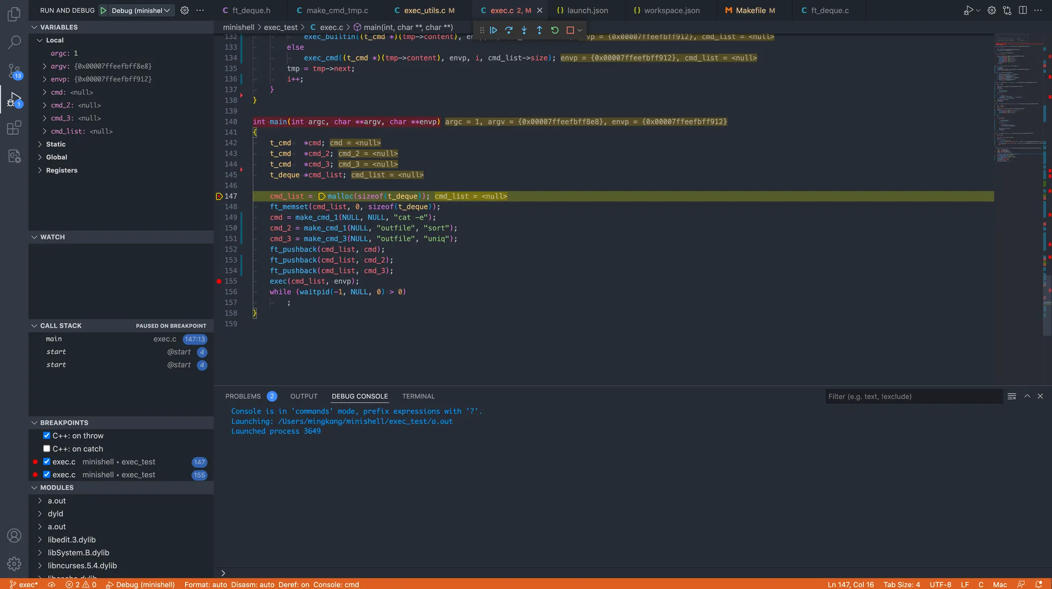 이처럼 lldb로 디버깅하던 것을 vscode에서도 할 수 있게 됩니다!!(컴파일 할 때 -g옵션 넣어주는 것 잊지마세요!)