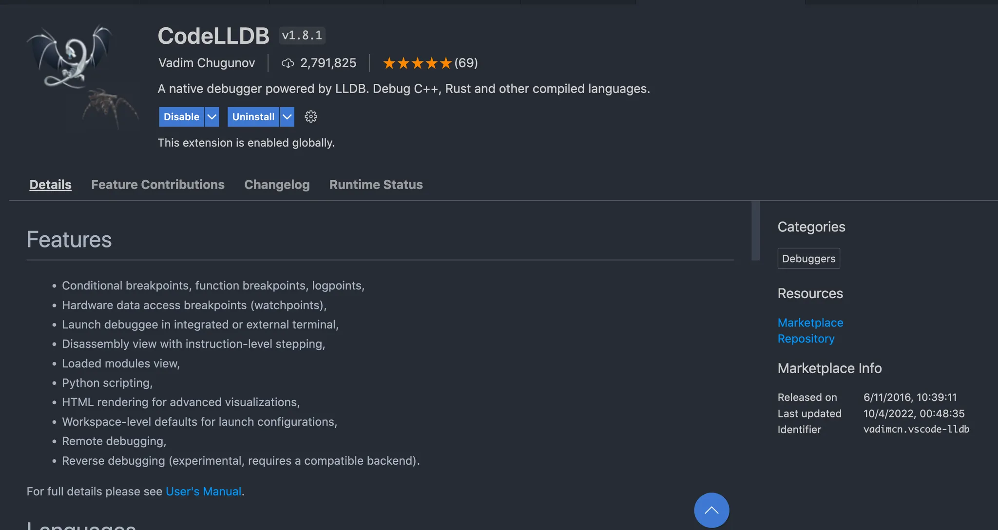 우선 vscode에서 codeLLDB를 설치해주세요.