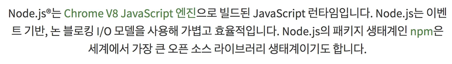 Node.js도 JavaScript의 런타임 이라고 한다. Node.js도 크롬, 브라우저들과 같이 JavaScript가 구동이 가능한 환경이라고 생각하면 된다.