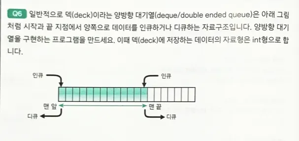 배열로 구현하는데, front의 인덱스가 0일때 push_front를 할 때나 rear의 인덱스가 max일때 push_end 를 할 때의 처리를 어떻게 해야할지 고민했다.