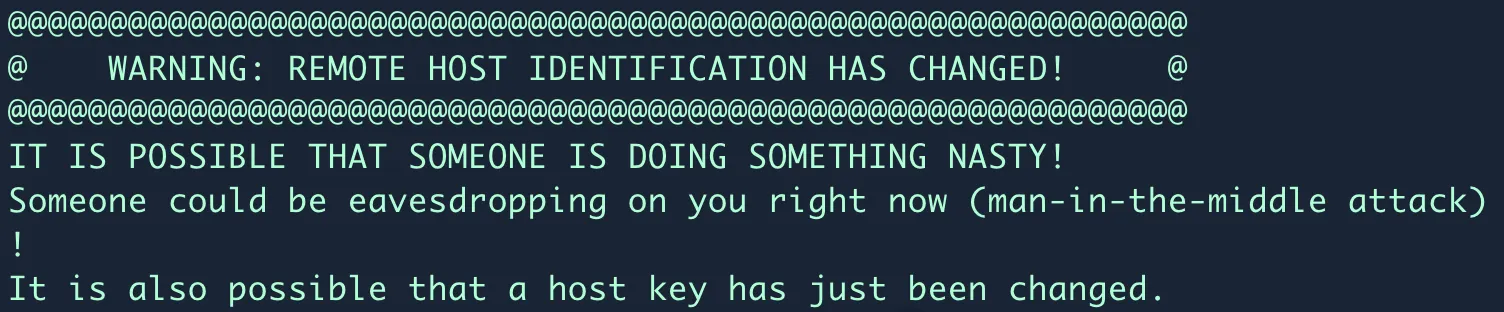 ~/.ssh/known_hosts 파일 내역을 보고 같은 ip의 기존에 등록된 내역을 삭제 후 다시 시도한다.