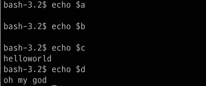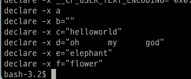 export d="oh my god" #echo출력과 export출력 다름