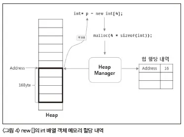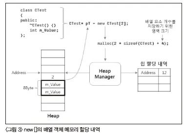 객체에 소멸자가 있는 경우, 배열 요소의 개수를 알기 위해 공간을 추가적으로 할당 받는다.