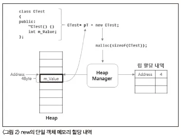 객체에 소멸자가 없는 경우, new/delete와 동일한 메모리 구조를 할당 받는다.