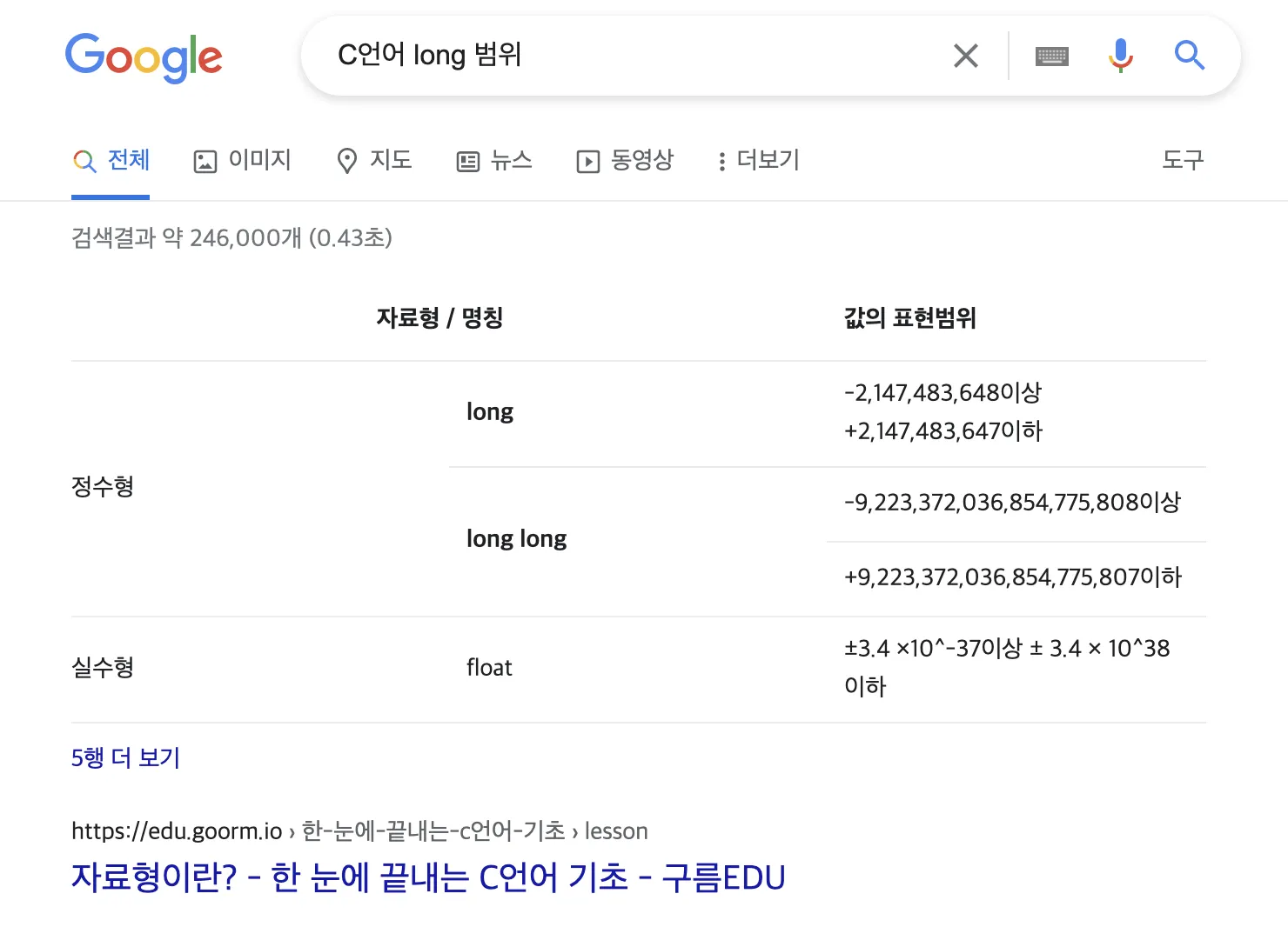 구글에 long 범위를 찾아보자!