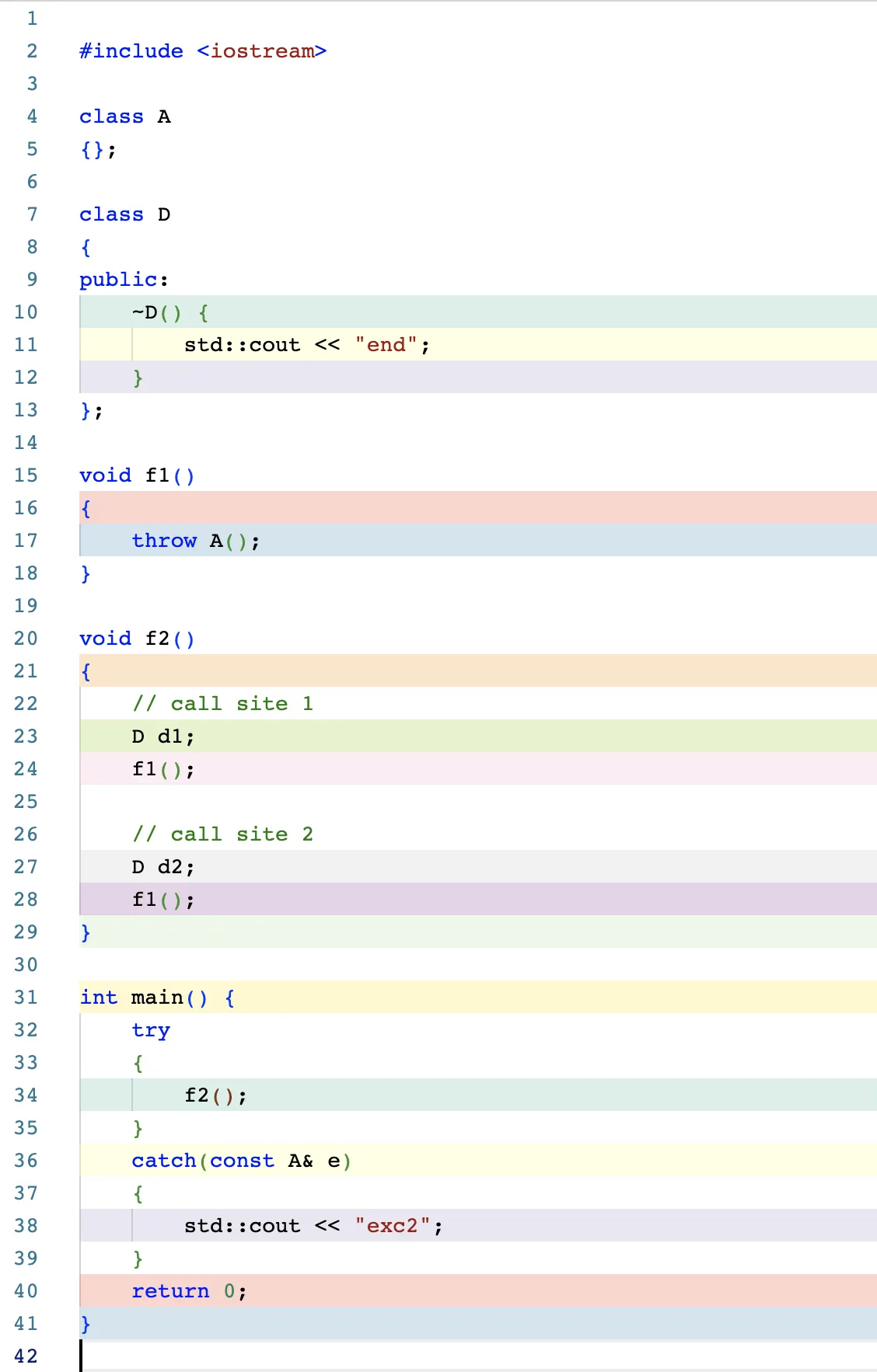위쪽의 f1() 함수에서 exception이 발생하면 d1의 소멸자를 호출해야하고,
