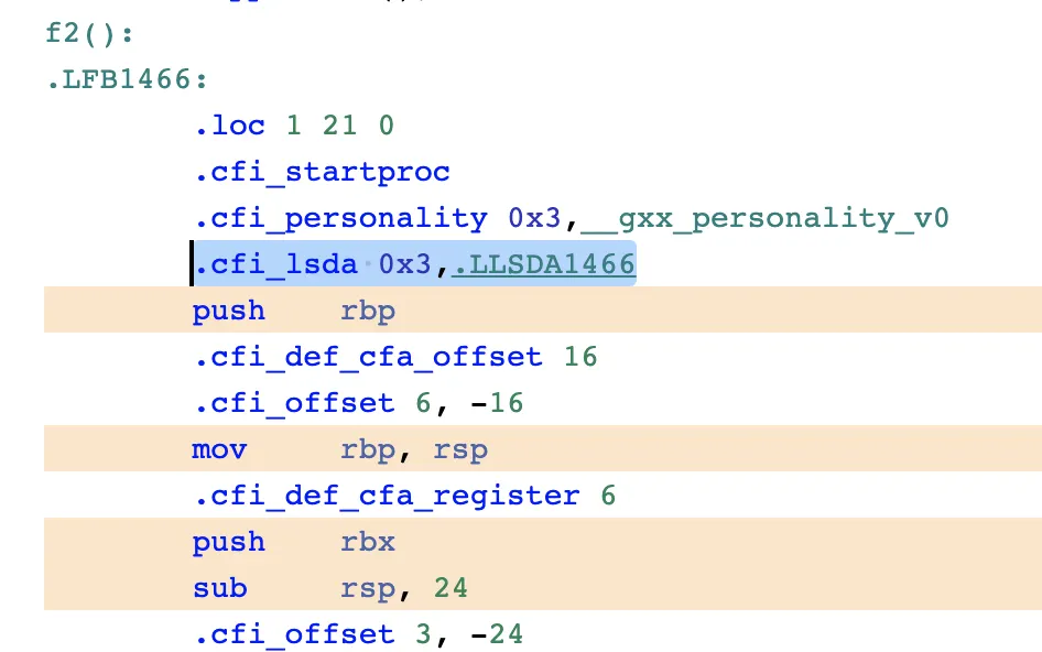 컴파일 결과의 f2() 부분의 함수 윗부분을 보니 함수 코드 이외에