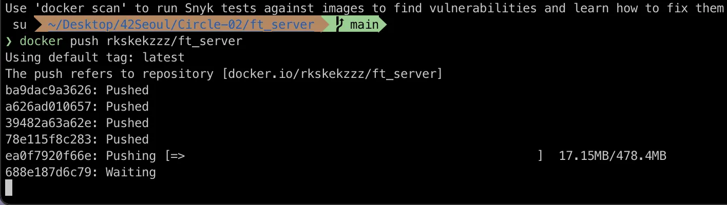 Docker hub에 로그인한뒤 이제 만들어둔 이미지를 push해보자