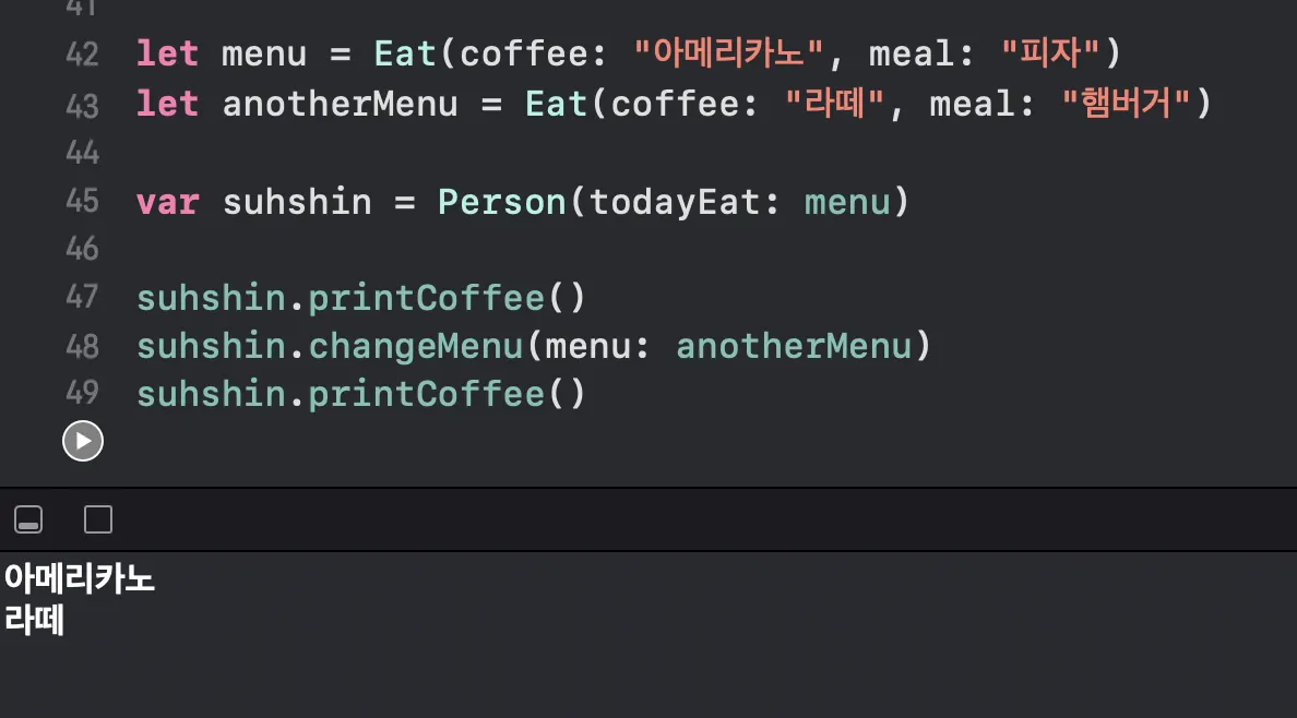 let anotherMenu = Eat(coffee: "라떼", meal: "햄버거")