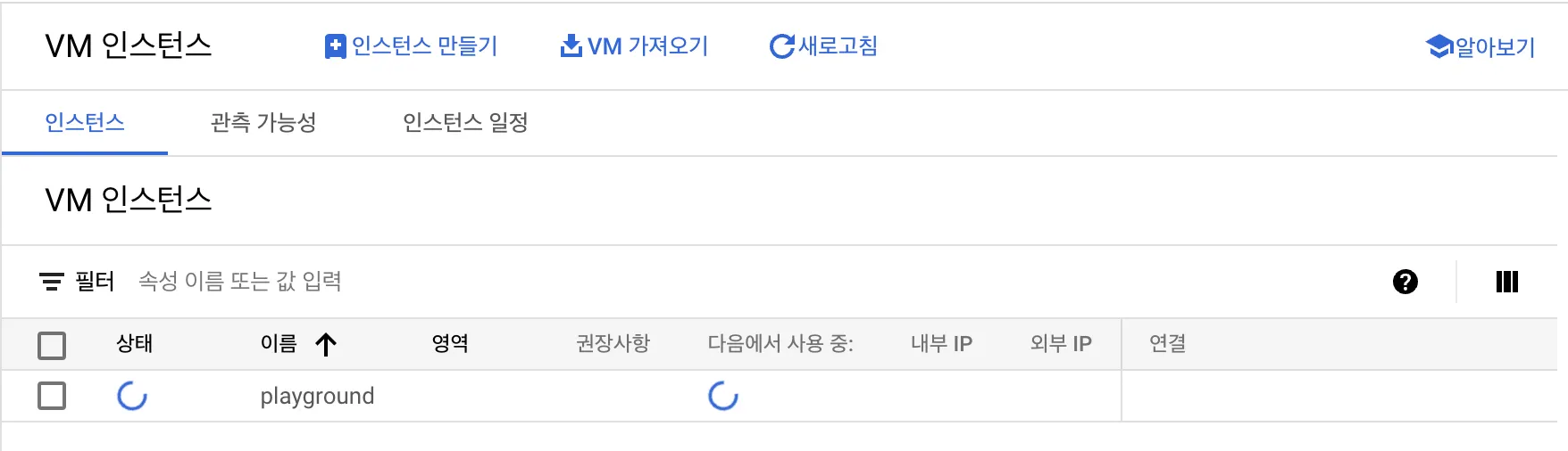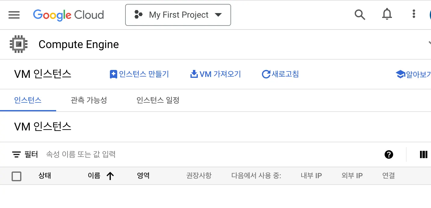 메뉴 → Compute Engine → VM 인스턴스 클릭