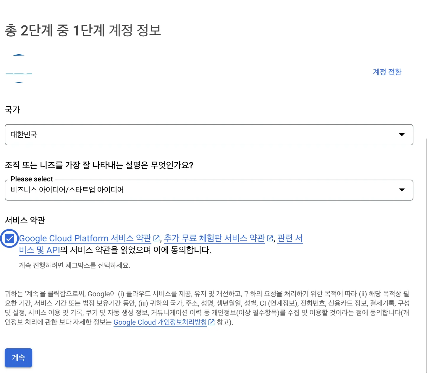 Google Cloud 회원 가입