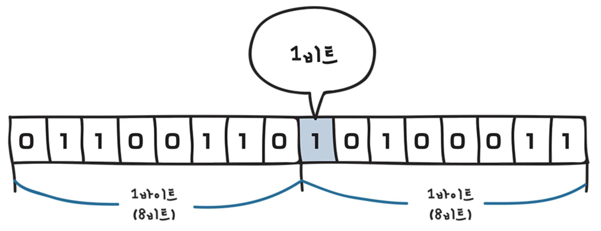 비트 : 정보의 최소 단위로 0또는 1을 나타낸다.
