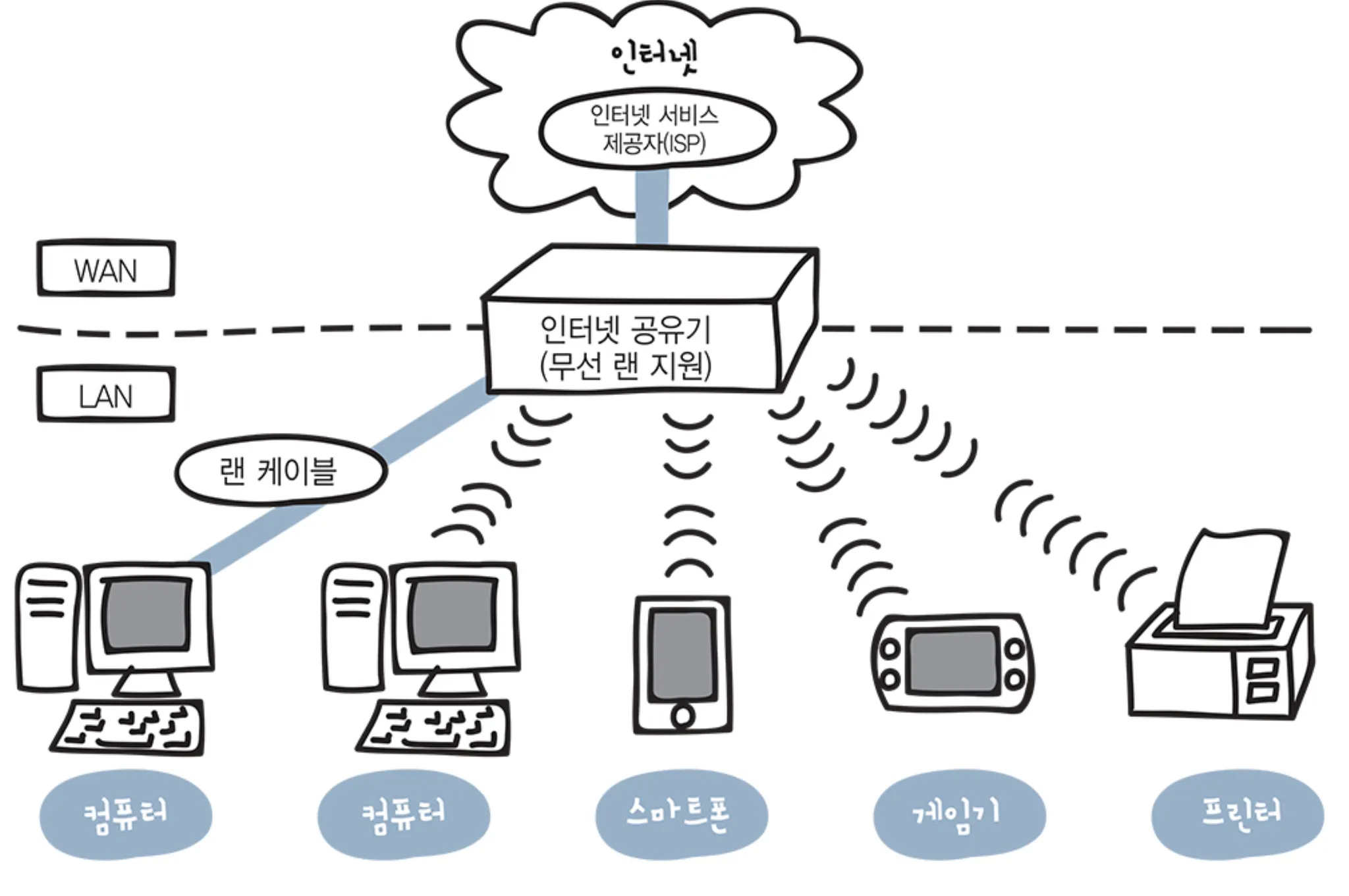 인터넷 서비스 제공자와 네트워크를 연결하기 위해서는 “인터넷 공유기*”라는 장비가 필요하다.