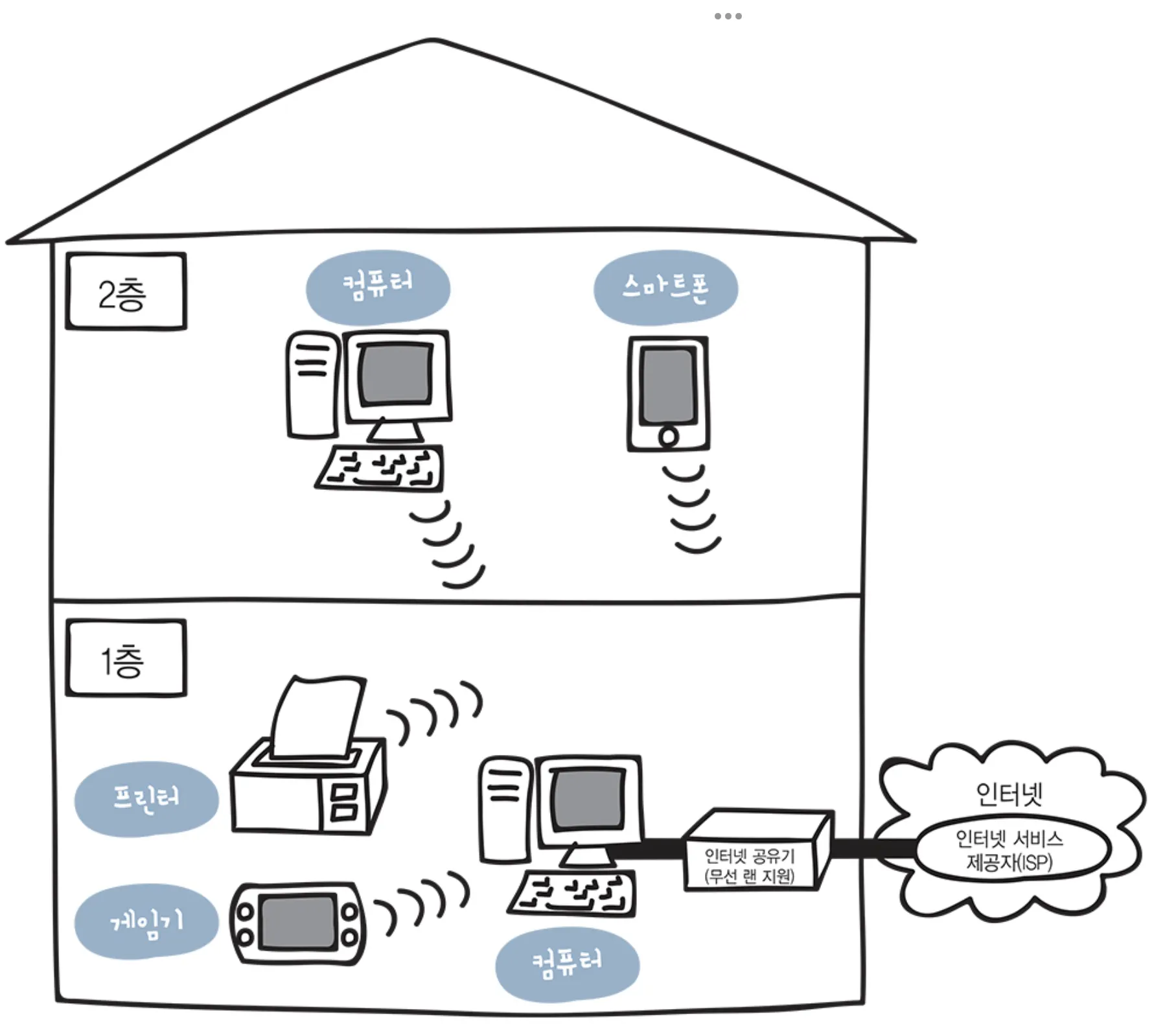 가정에서는 기본적으로 다음과 같이 네트워크를 구성한다.