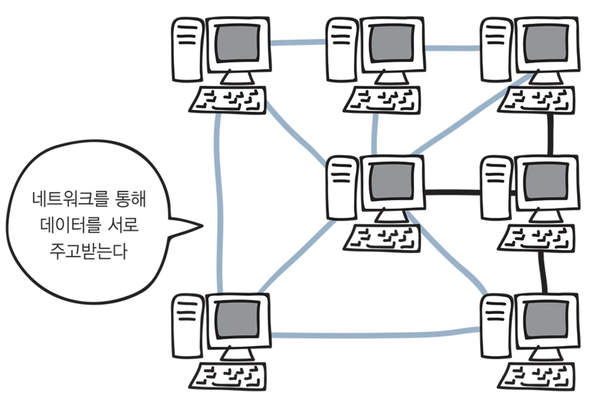네트워크 : 컴퓨터를 두 대 이상 연결하여 서로 데이터를 전송할 수 있는 통신망이다.