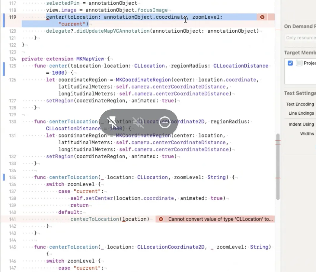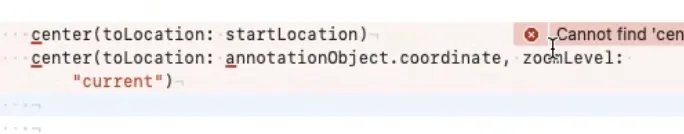 centerToLocation → center(tolocation locate : CLLocation) 등