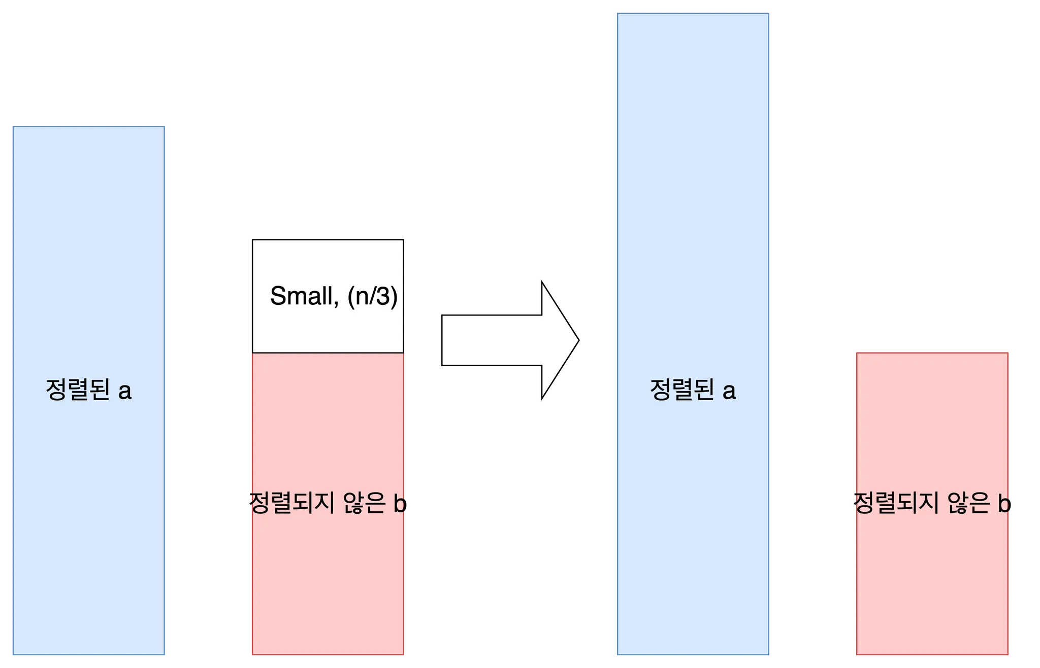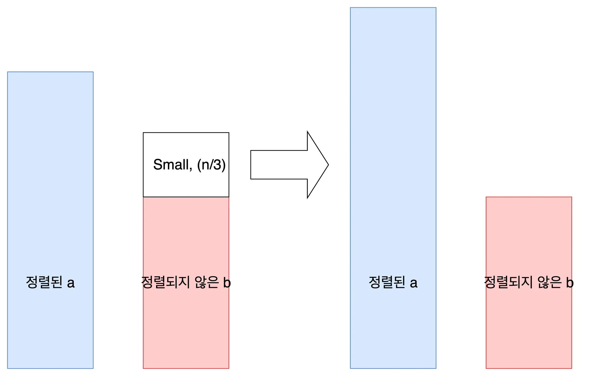 Small을 정렬해서 a로 이동, 비용은 B(n/3)
