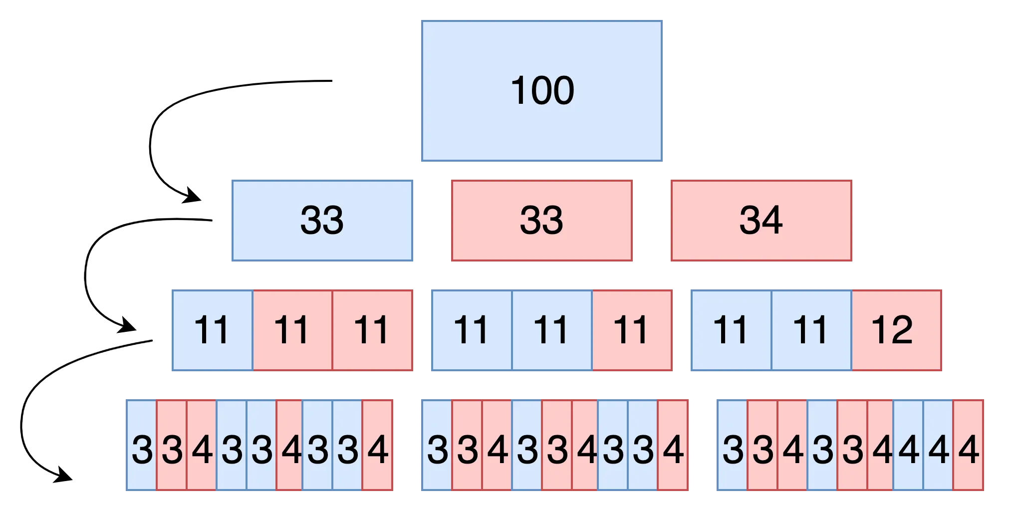 3개의 파티션으로 분할, 그 비용은 4n/3.