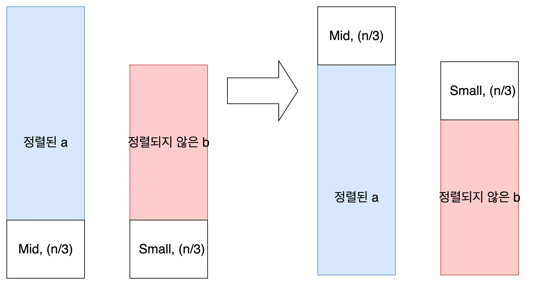 rrr커맨드를 이용하여 Mid와 Small 한 번에 상단으로 이동, 그 비용은 n/3.