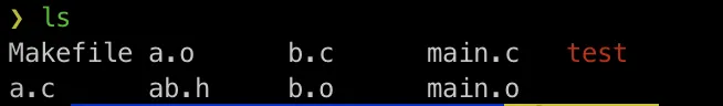 모든 목적 파일들과 실행파일인 test가 잘 생성되었음을 알 수 있다. 이제 test파일을 실행시켜서 우리가 원하는 결과가 나오는지 확인해보자.