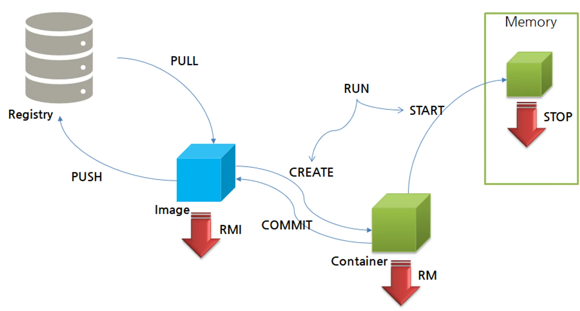 컨테이너: 생성, 시작, 중지, 이동 또는 삭제할 수 있는 실행 가능한 이미지 인스턴스