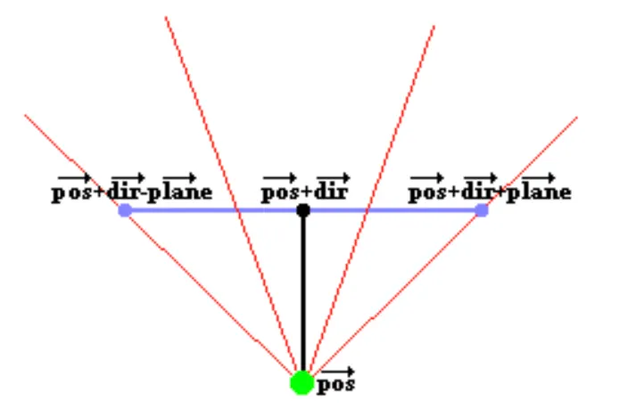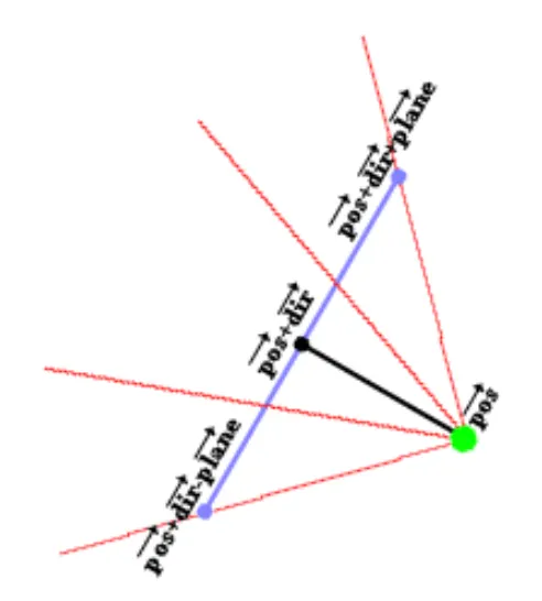 이렇게 벡터를 이용하는 방법에는 방향벡터 외에 카메라 평면도 필요합니다.
