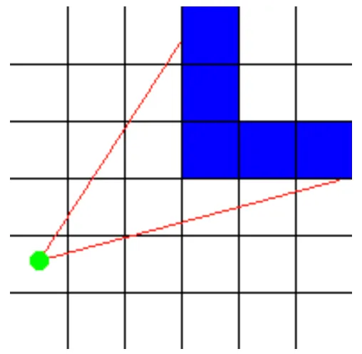 적색 선은 벽의 적중지점에서 플레이어까지 유클리드 거리를 나타내는 광선을 나타냅니다.