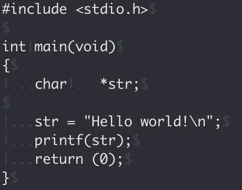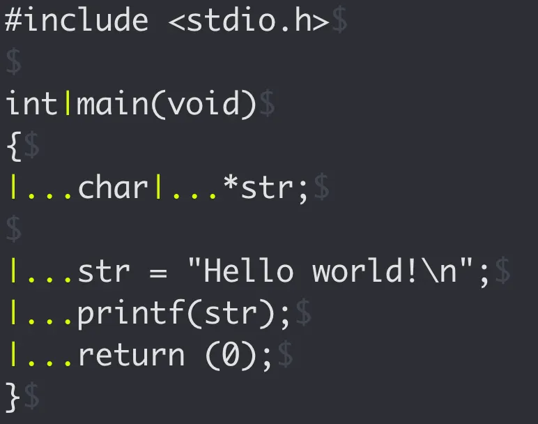 eol 문자는 $로, trail은 -로, 그리고 tab은 |... 같은 식으로 보이게 된다.